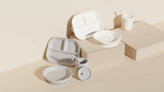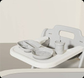 این ست ظروف با اکثر صندلیهای بلند مطابقت دارد و به گونهای طراحی شده است که از نظر بصری مانند ظروف غذاخوری بزرگسالان باشد، اما از سیلیکون ساخته شده است که ایمنتر و نشکن است.